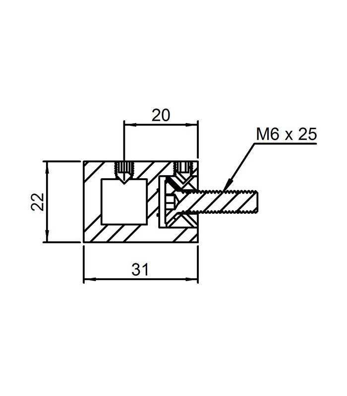 Support 22x22mm Long 31mm- Pour lisse de 12x12mm