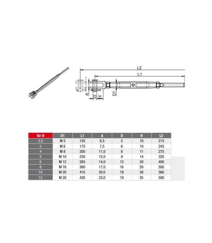 Ridoir à chape fixe en inox A4 avec terminaison à sertir sur l'extrémité d'un câble inox.