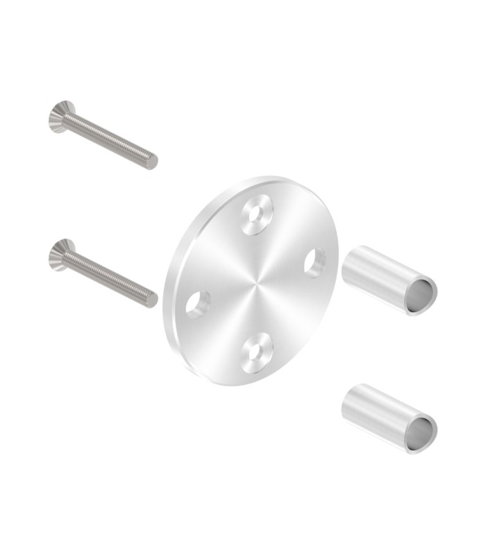 La partie basse du poteau est fermée par un bouchon d’extrémité inox assurant une finition propre et protégeant l’intérieur du tube.