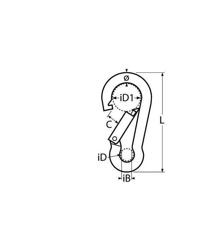 Ouverture très rapide avec un grand angle, peut être utilisé comme petit crochet, à utiliser pour de faibles charges. Inox A4 AISI 316
