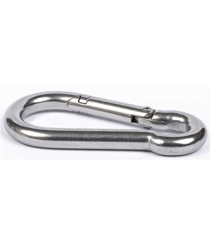 Mousqueton de pompier en acier inox A4, charge faible. Dimensions en mm.