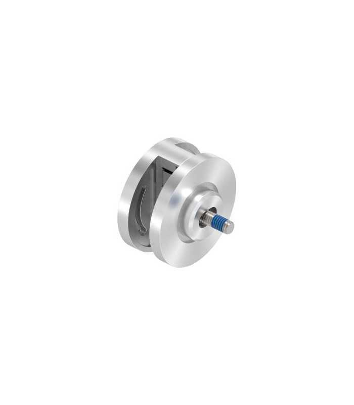 Cet pince à verre ronde en inox pour poteau ou surface plate en finition grain 240 mat est livré avec vis de fixation et la cale de maintient du verre.