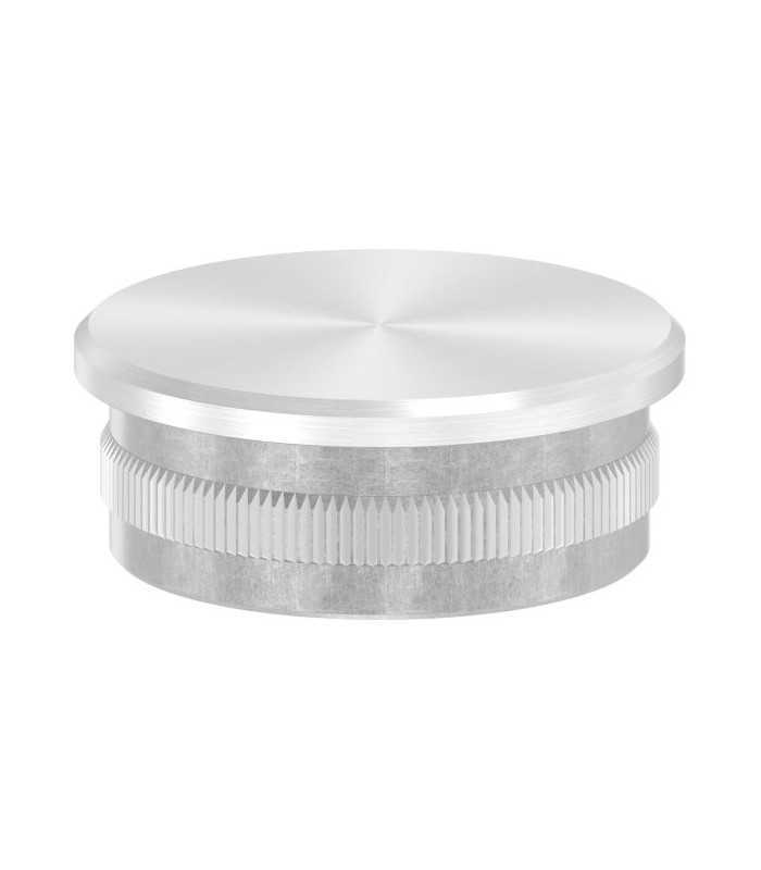 Ce poteau inox ø42,4mm inox grain 240 mat est livré avec ça platine de fixation, son bouchon bas et son support de main courante orientable.