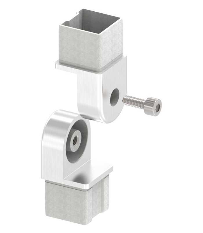 Raccord articulé inox pour profils carré de 40x40x2mm, disponible en inox A4 (AISI 316).