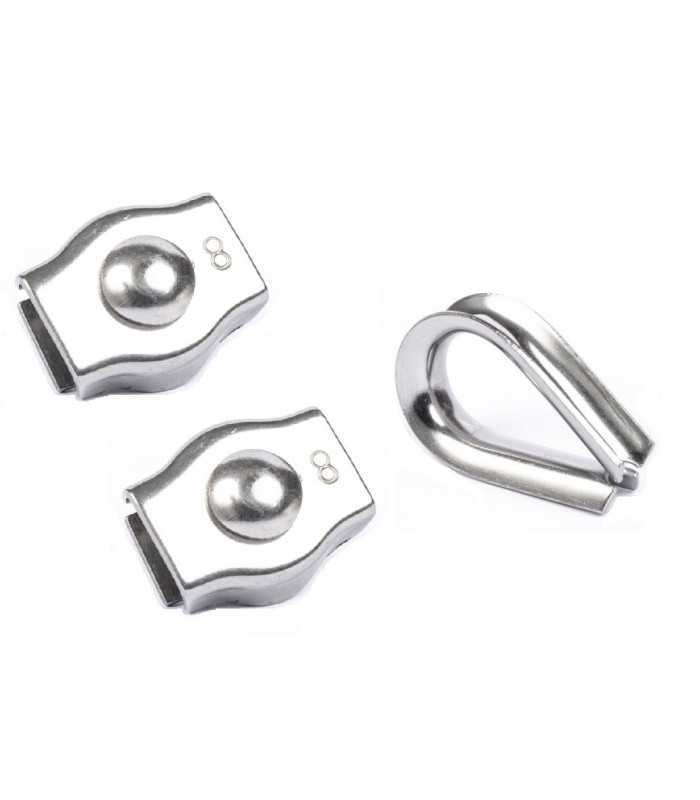 Kit 2 serres-câbles simples et un cosse coeur pour câble de ø4mm inox A4 AISI 316