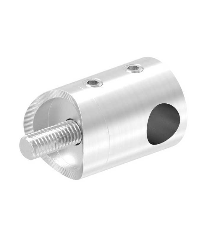 Ce support de barreau se pose sur les poteaux 42.4mm gauche, intermédiaire ou droite, il permet ainsi de tenir votre lisse de 12 mm en place. Le support ce vis sur le poteau avec une vis métrique de 6x25 fournie et la lisse de 12 mm est bloquée pas 2 vis pointeaux.