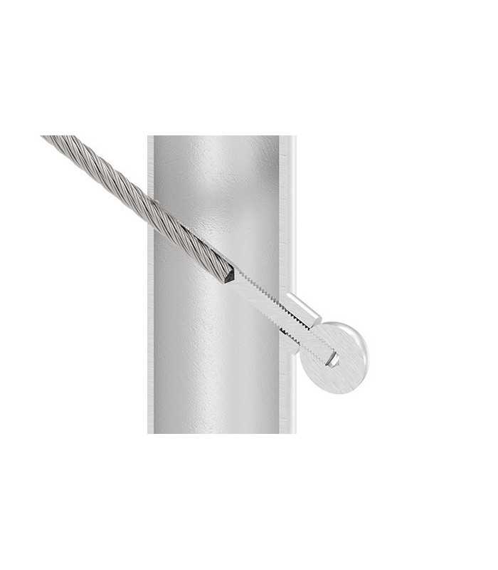 La rondelle inclinée inox A2 permet d’adapter proprement le passage de câble dans une configuration en escalier. Elle compense l’angle du poteau et assure une finition nette et professionnelle au niveau du perçage.