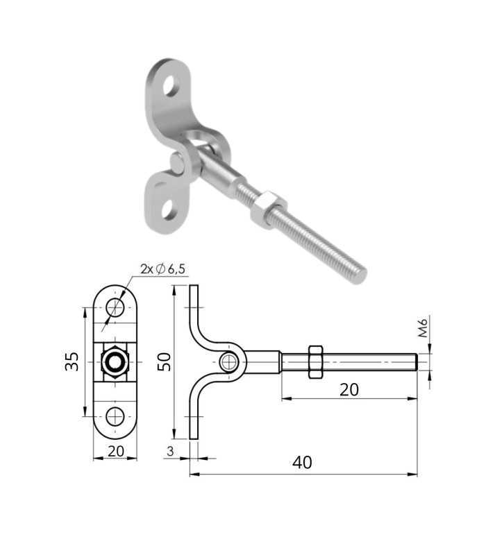 Ce tendeur inclinable en inox A4 (AISI 316) est spécialement conçu pour la mise en tension de câbles inox de Ø 3 mm à Ø 4 mm. Sa conception inclinable permet d’ajuster facilement l’angle du tendeur, même lorsque les points de fixation ne sont pas parfaitement alignés.