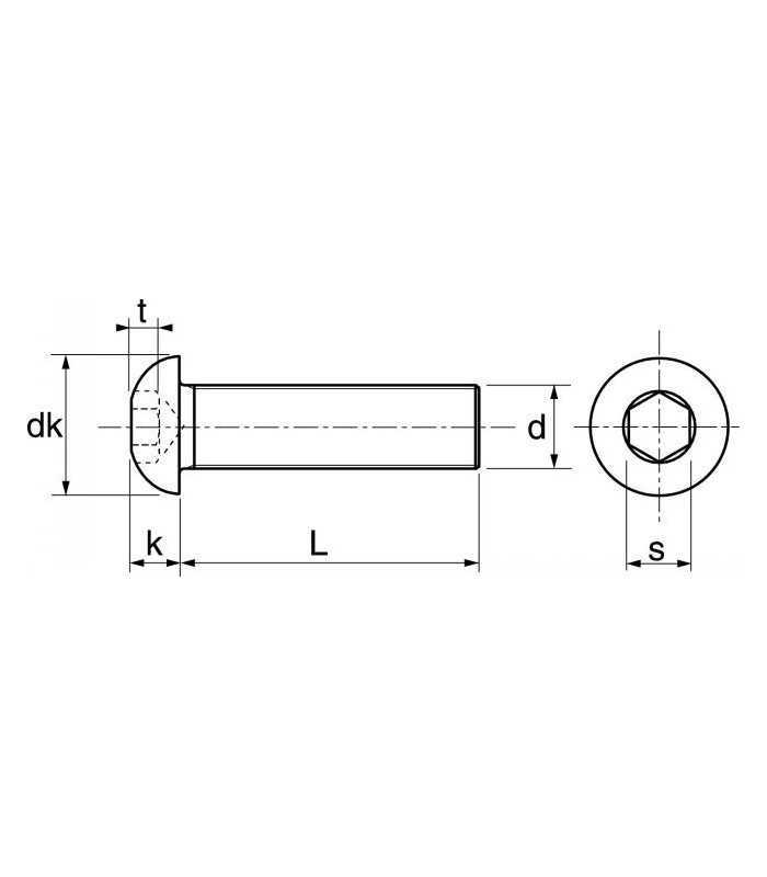 Les dimensions ci-dessous sont issues de la norme ISO 7380 pour les vis à tête bombée hexagonale creuse.